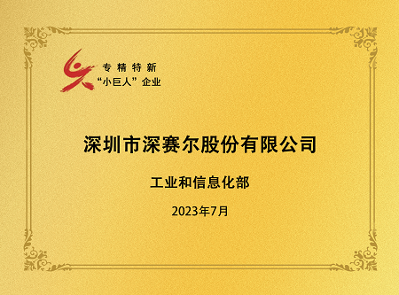 深賽爾榮膺國家專精特新“小巨人”稱號