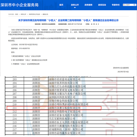 2023年7月21日, 喜報傳來,在工業和信息化部組織開展的第五批專精特新“小巨人”企業培育活動中,深圳市深賽爾股份有限公司順利通過審核及公示。
